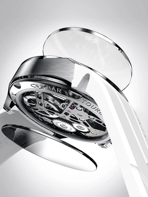 Höchste Uhrmacherkunst: Das Tourbillon - Entwickelt für höchste Präzision bei mechanischen Armbanduhren. Bei diesem Modell findet sich das Tourbillon eingebettet in ein skelettiertes Zifferblatt, in einem 316L Edelstahl Gehäuse mit Saphirglas und Rainbow Edelstein-Lünette.