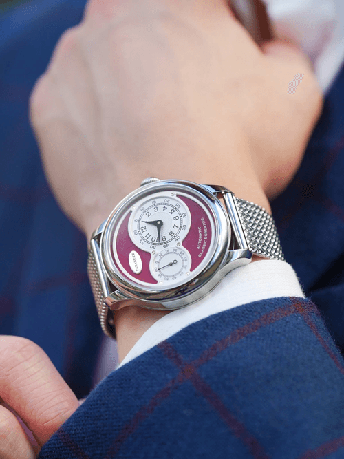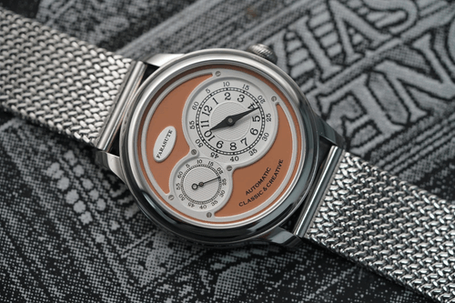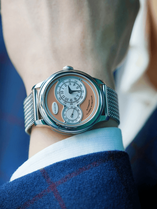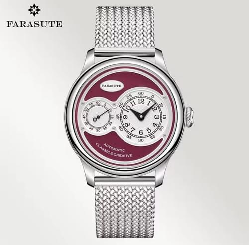 Wir freuen uns, Ihnen diese wunderschöne Neuerscheinung von Farasute anbieten zu können. Die Farasute Ref. 5506A kombiniert klassische Uhrmacherkunst mit raffinierten Designelementen und besticht durch ihre frischen Zifferblattfarben Salmon, Aubergine und Grau. Abgerundet wird dieses elegante Modell von einem zeitlosen 316L Milanaise-Armband, das einen hohen Tragekomfort gewährt.