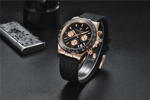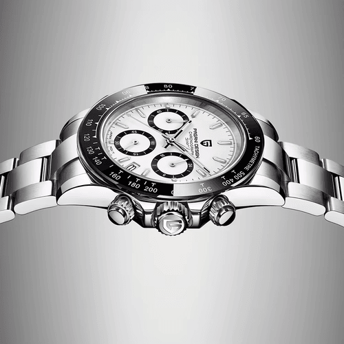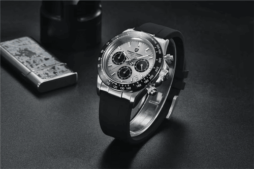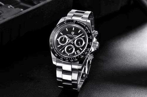 Pagani Design präsentiert mit dem PD-1664 Chronograph eine Hommage Uhr an die ikonische Rolex Daytona, die eines der meistgesuchtesten Modelle der Uhrenwelt ist. Diese günstige Hommage Uhr von Pagani Design greift das Design ihres Vorbilds auf und wartet darüber hinaus mit zusätzlichen Funktionen wie einer Datumsanzeige oder 24h Anzeige auf. Selbstverständlich verfügt die Uhr dank ihres VK63 Uhrwerks auch über einen funktionierenden Chronographen.