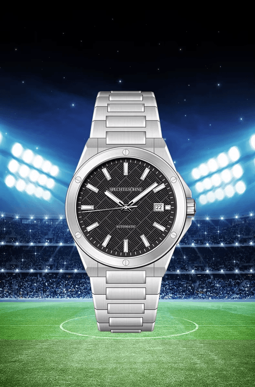 Modernes Edelstahl-Gehäuse trifft auf technisch-verspieltes Zifferblatt: Die Specht & Söhne SP0012 ist angelehnt an die IWC Ingenieur.